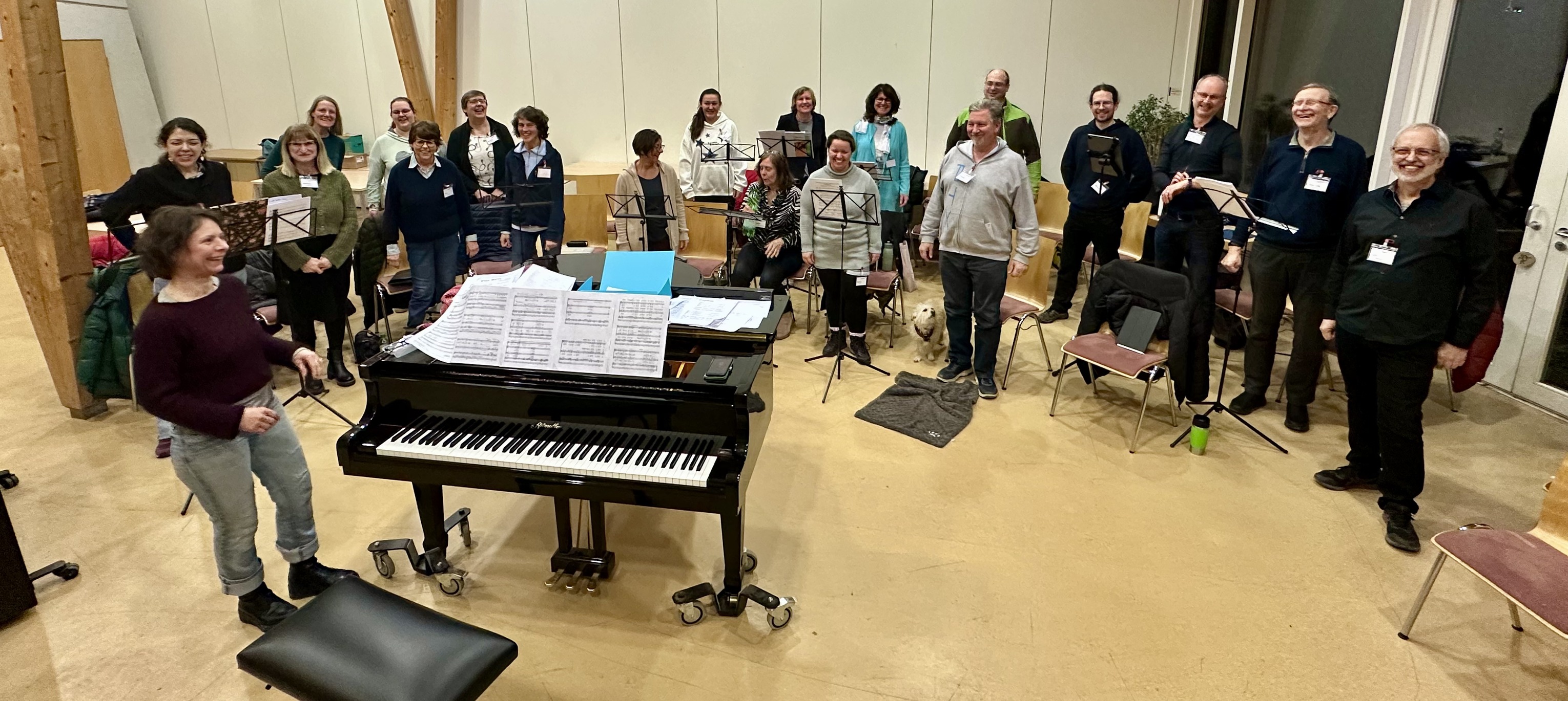 Zu Beginn gibt es stets Stimmübungen. Wir erschliessen uns neue Lieder abschnittsweise und proben drei bis vier Lieder an einem Abend.